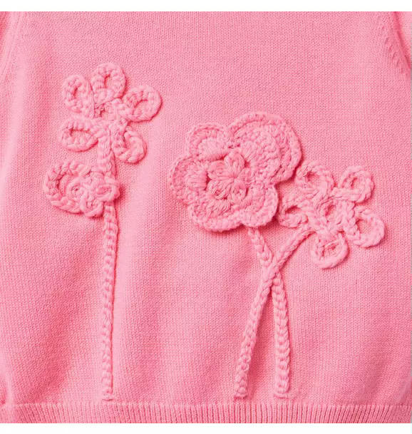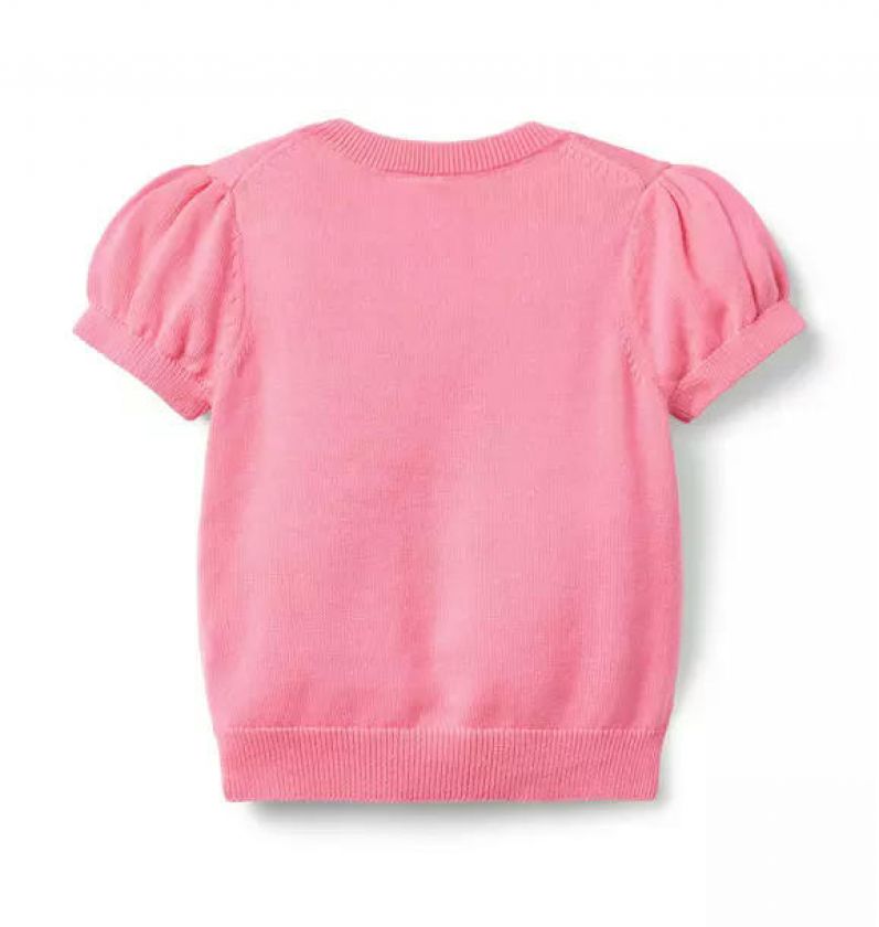 Freshly picked for fashion-forward moments, our soft sweater top is designed with floral applique details, puff sleeves and ribbed trim.