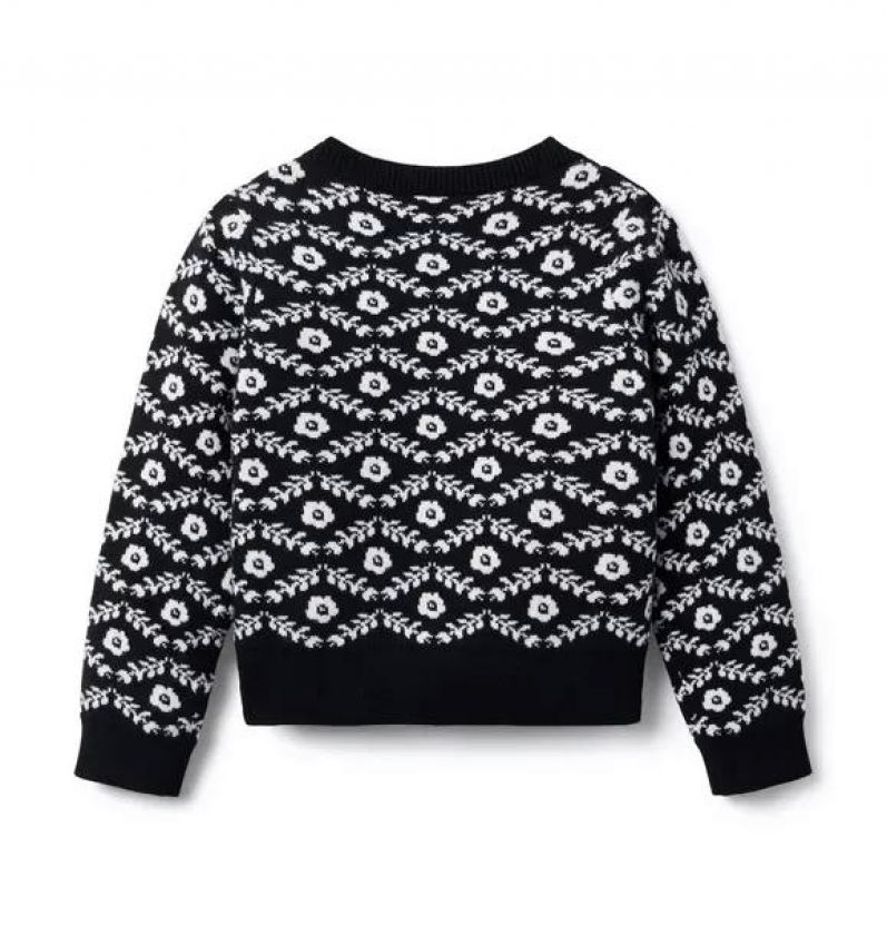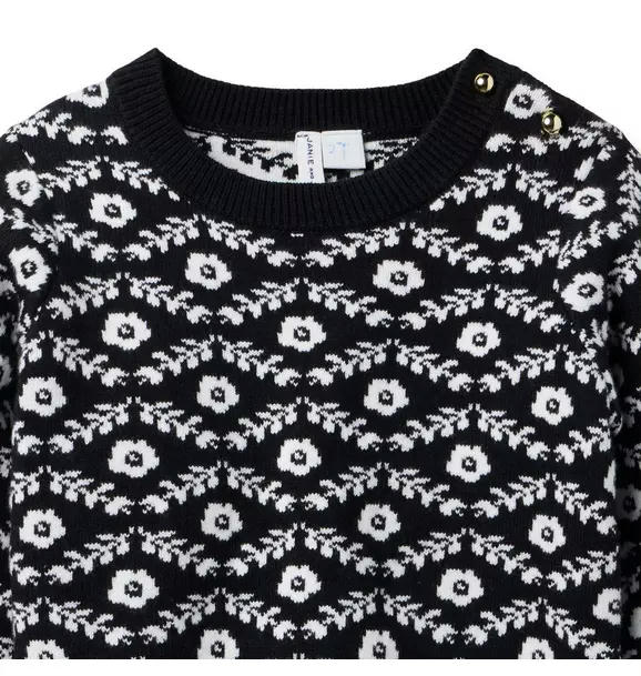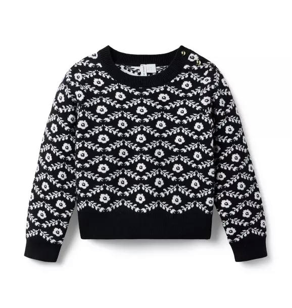 A crafted and cozy sweater in soft jacquard. With allover florals, ribbed trim and gold-tone buttons at the shoulder.