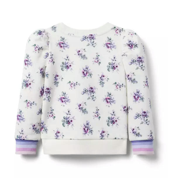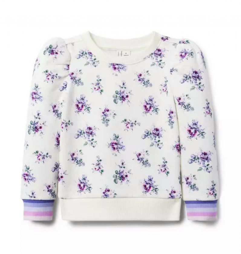 This soft fleece favorite is always in bloom. With allover florals, puff sleeves and ribbed striped cuffs for a little something extra.