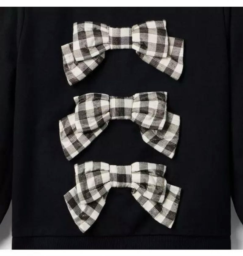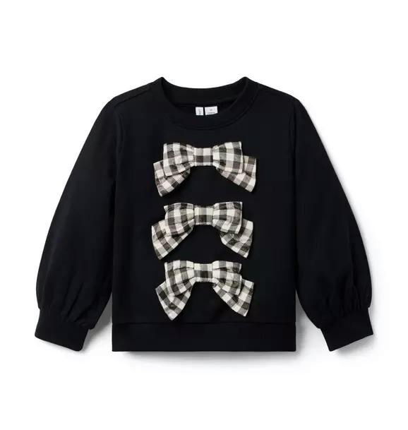 As cozy as it is chic, our French terry sweatshirt features gingham bows with metallic details for a hint of shine. Finished with ribbed trim.