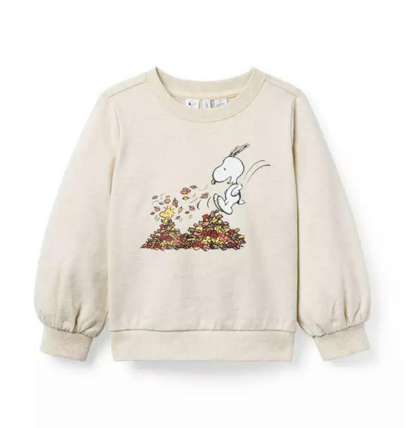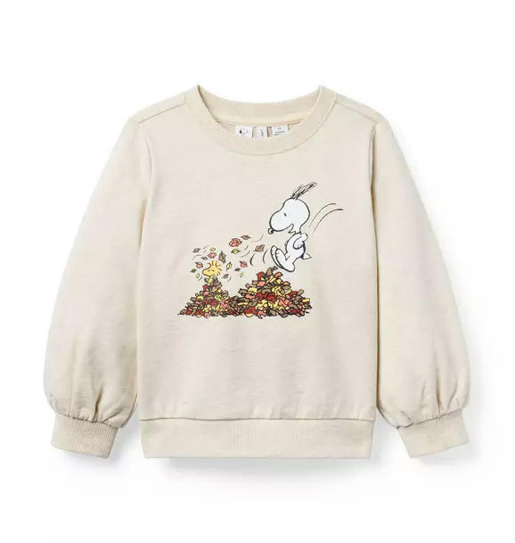 Autumn adventures await in our soft French terry sweatshirt. Featuring a screenprinted Snoopy and Woodstock graphic, puff sleeves and ribbed details too.