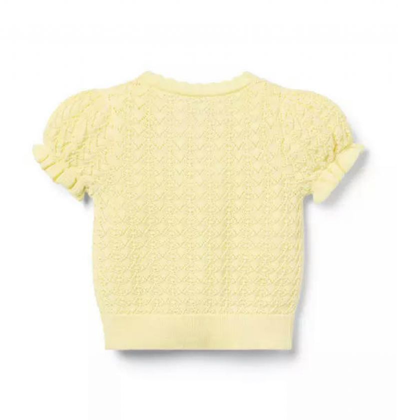 The perfect puff sleeve cardigan to wear with everything. Featuring allover pointelle and ruffle details at the cuffs.