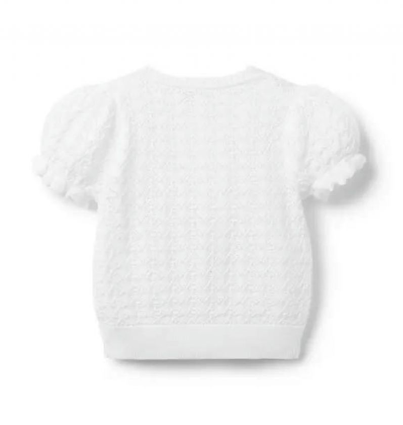 Pointelle Puff Sleeve Cardigan