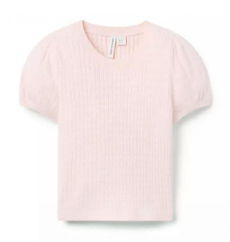 An everyday favorite in allover pointelle. With puff sleeves and ribbed trim, it adds something special to every look.