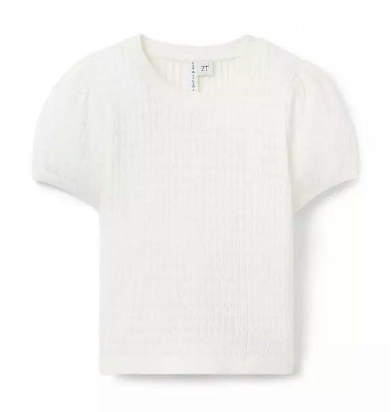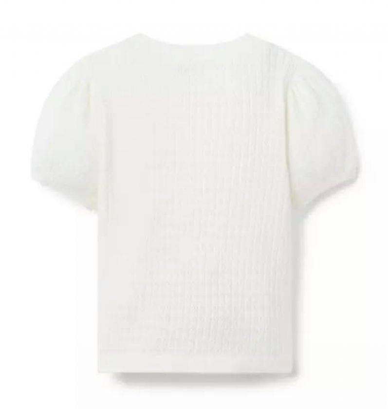 An everyday favorite in allover pointelle. With puff sleeves and ribbed trim, it adds something special to every look.