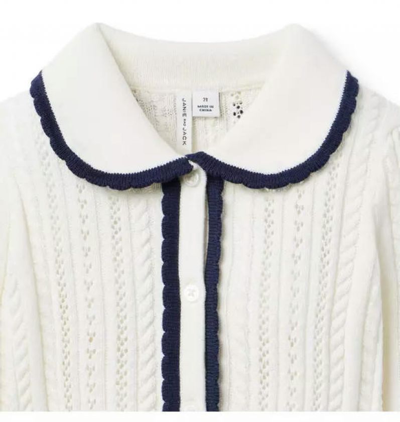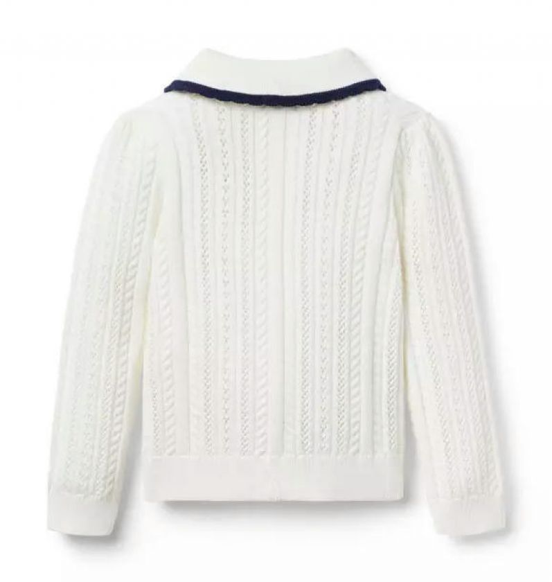 A classic cardigan with chic details to love. Designed with allover pointelle, scalloped trim and a preppy collar too.