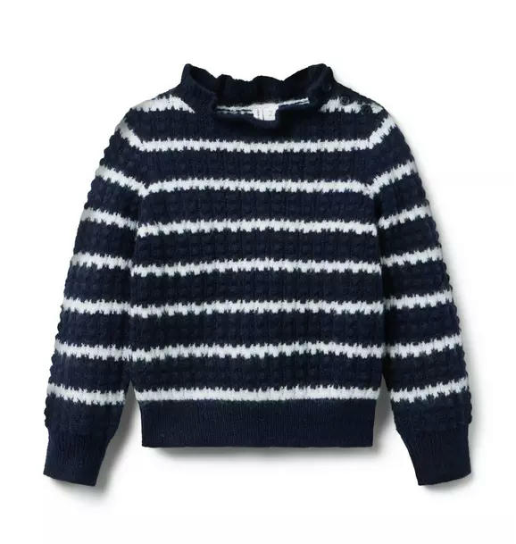 A cool weather look that's just our stripe. Designed in a soft textured knit with a ruffle neck and ribbed trim.