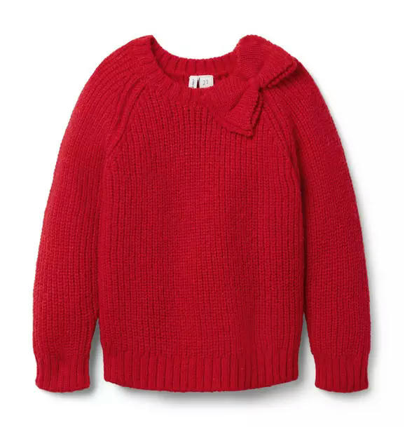 A close-knit favorite for festive occasions or just because. Our soft sweater features an allover ribbed knit, bow detail and raglan sleeves.