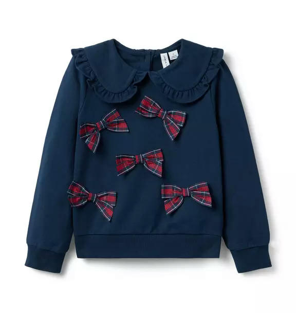 For instant holiday style, just add a bow. Our sweatshirt in soft French terry is finished with 3D tartan bows, a ruffle-trimmed collar and ribbed details.