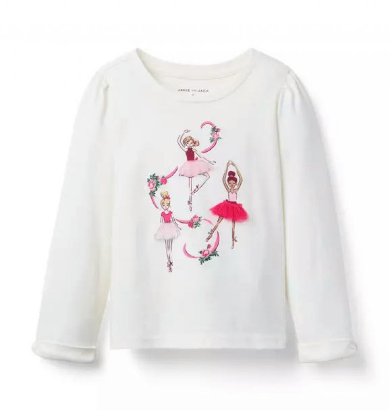 Style takes center stage with our tee in soft, pure cotton jersey. Featuring a ballerina graphic with tulle applique and embroidered flowers.