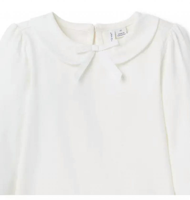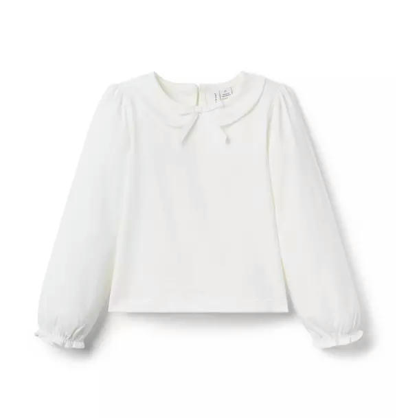 A bow makes every look better. Our top in soft cotton jersey features a bow collar and ruffles at the cuffs.