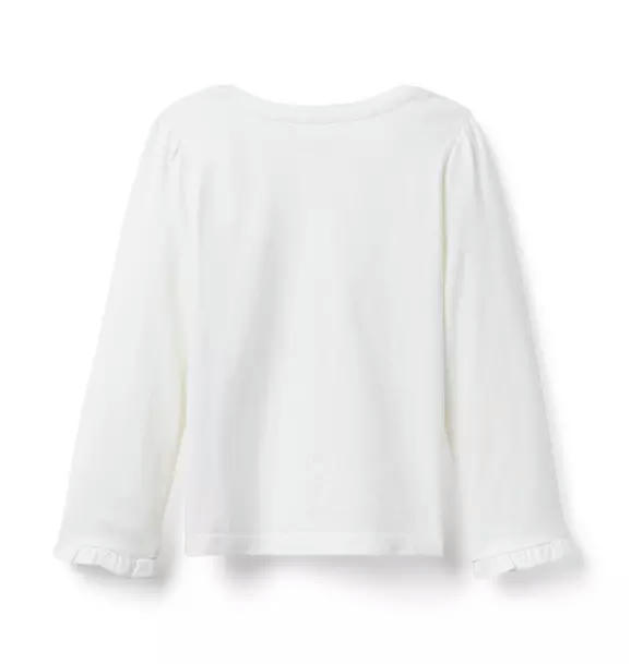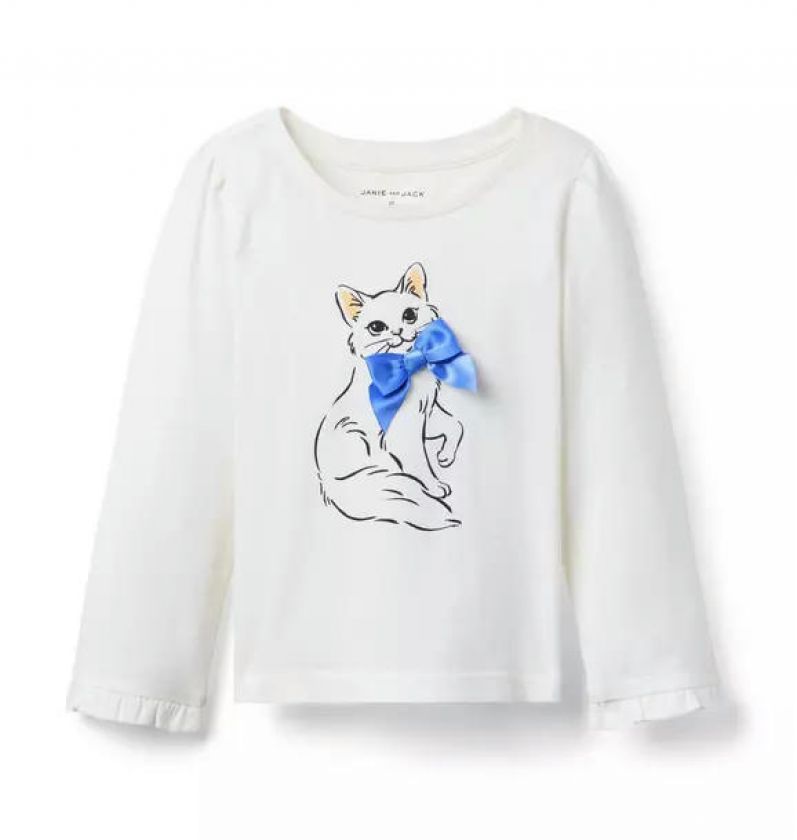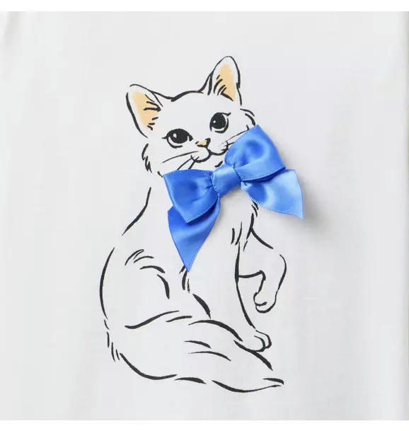 A tee that's simply purrfection. Designed in pure cotton jersey with a cat graphic, bow detail and ruffle cuffs.