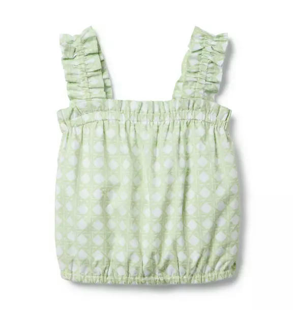 For sunny days near and far, our breezy ruffle strap top is just the thing. In pure cotton with a cane checked print and a cropped silhouette.