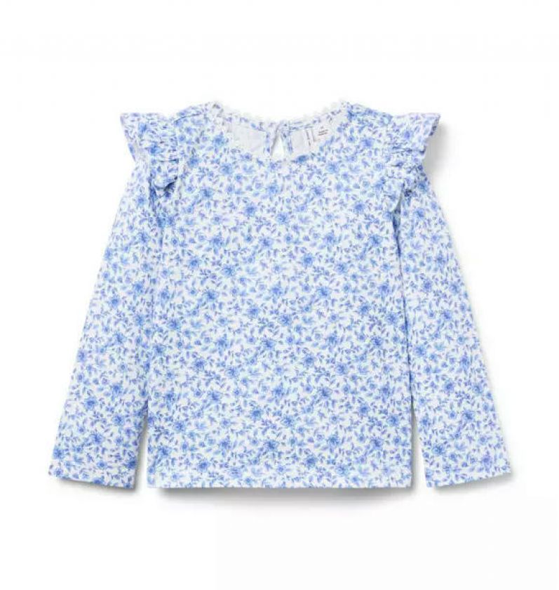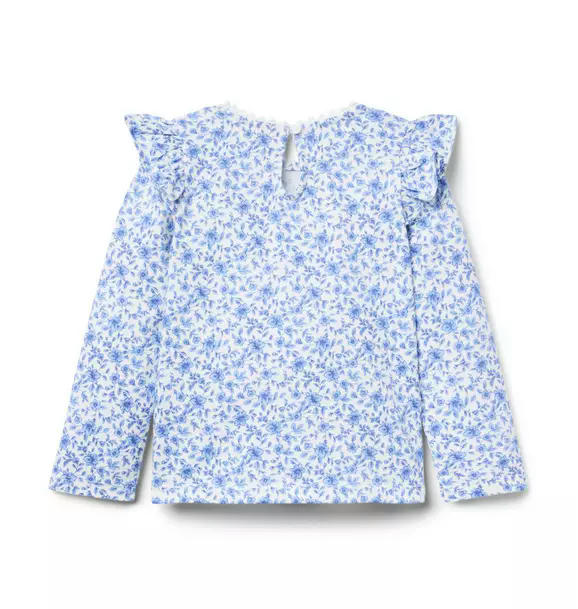 Florals, frills and a fashionable season ahead. Our soft cotton jersey top features ruffle shoulders and lace trim at the collar.