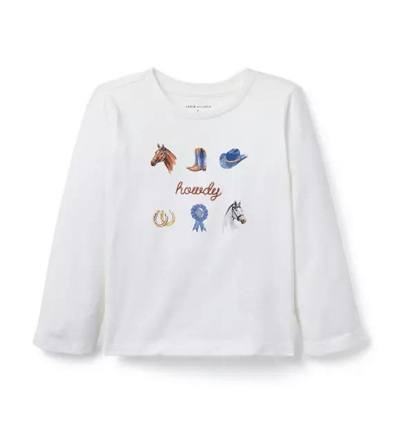 Designed with equestrian inspiration, our soft jersey tee features screenprinted icons and an embroidered Howdy detail too.