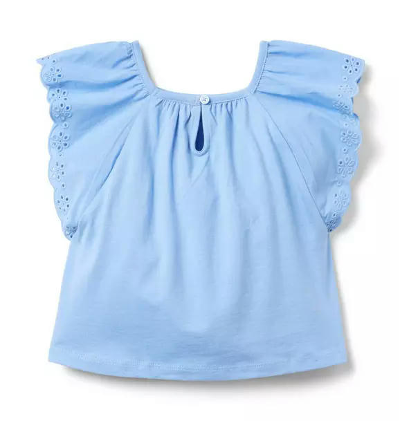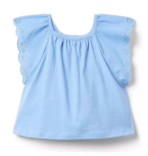 A top favorite that goes with just about everything. In soft cotton jersey with an A-line silhouette and floral eyelet trim at the sleeves.