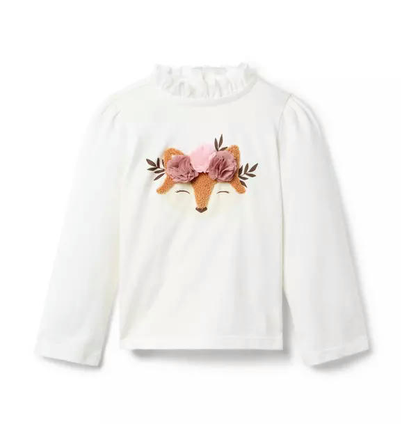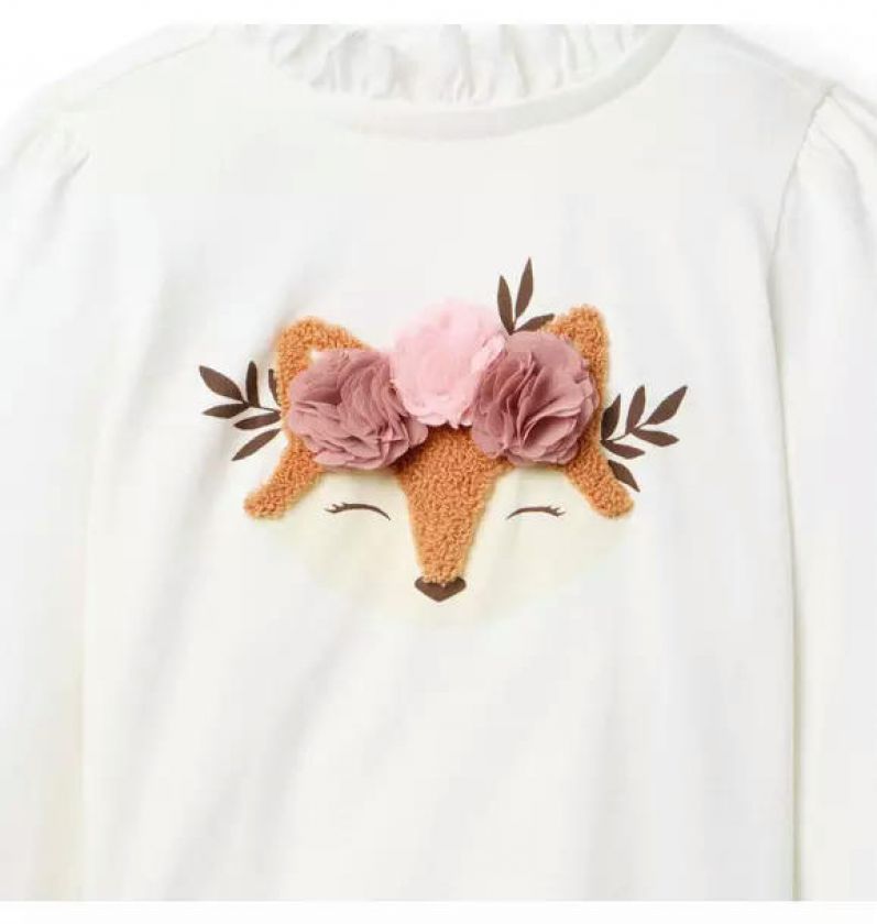 With a fox friend and applique floral details, our pure cotton tee is a true style standout. Finished with ruffles at the neck for extra frills.