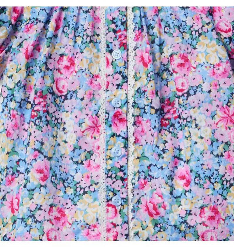 Florals for any day, anywhere. Our pure cotton top features puff sleeves and lace trim too.