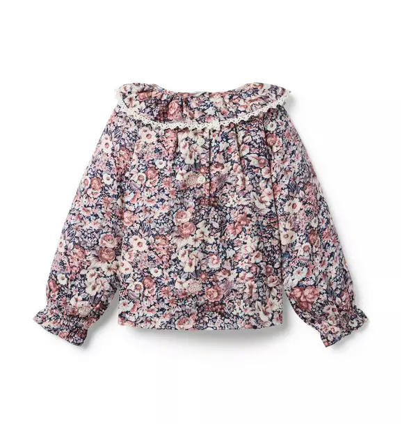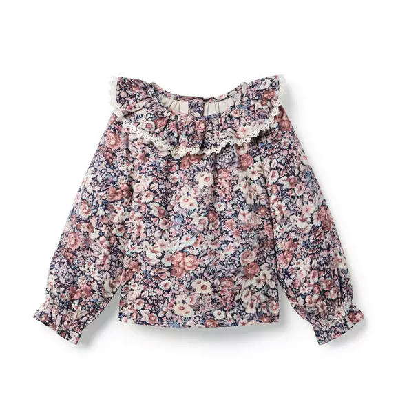 Style blooms with our floral top in soft cotton twill. With ruffle details and crochet trim at the collar, it's a favorite to wear your way.
