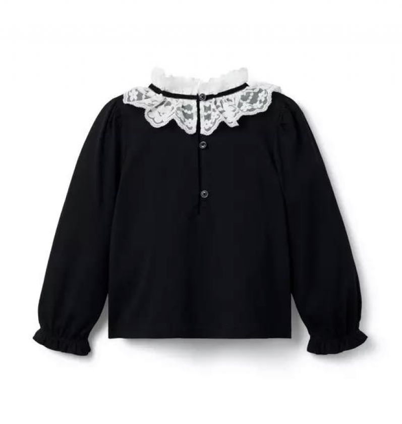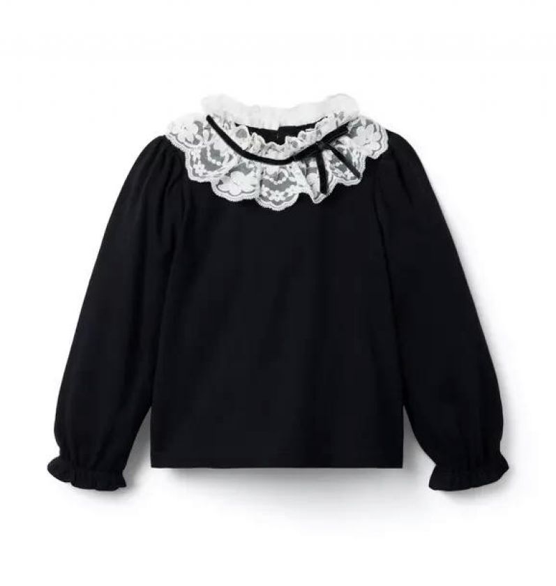 Lace elevates every look. Our top in soft, pure cotton is ready to pair with everything, thanks to a lace collar, ribbon detail and ruffle cuffs.