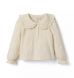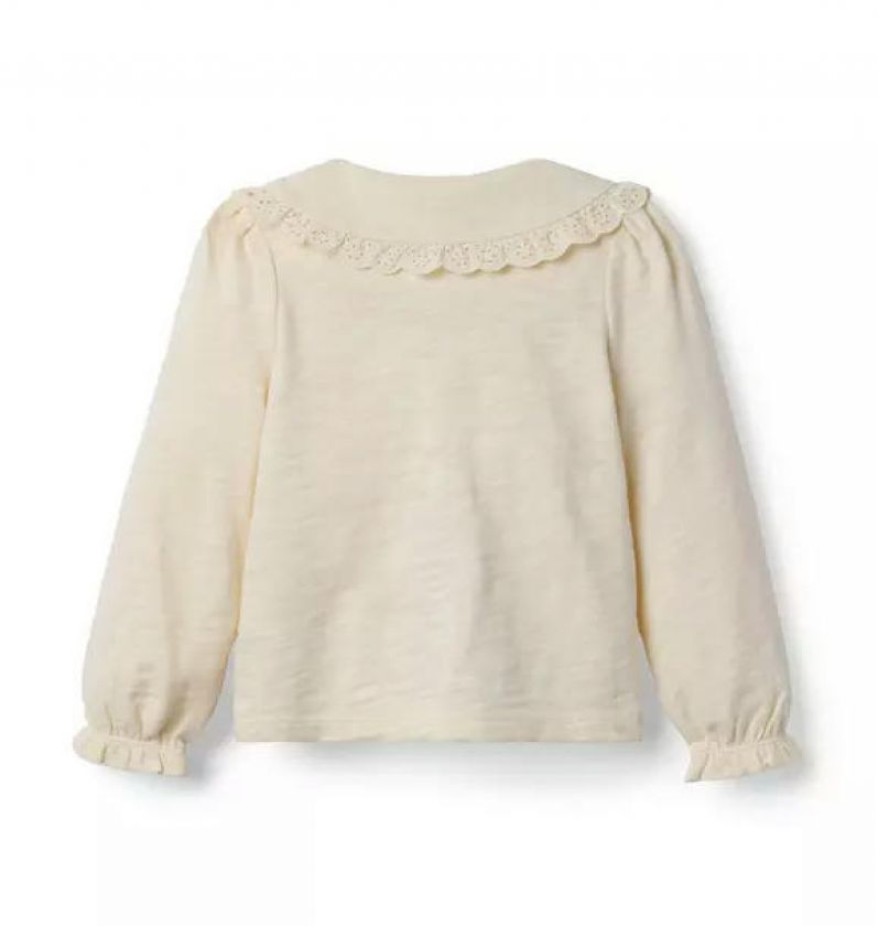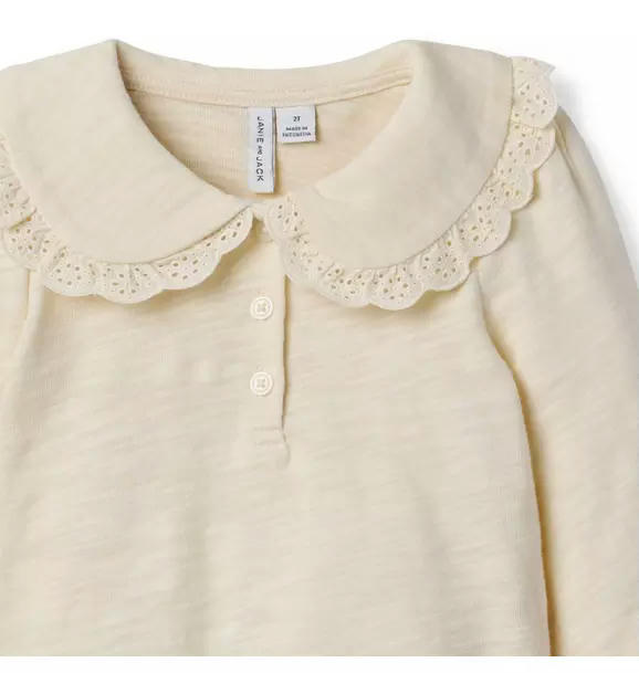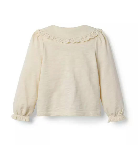 Style starts at the collar. Our soft cotton top features a lace-trimmed Peter Pan collar and ruffle cuffs too.