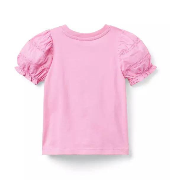 Wear your style on your sleeve. Our soft jersey top features puff sleeves with lace details and ruffle cuffs too.