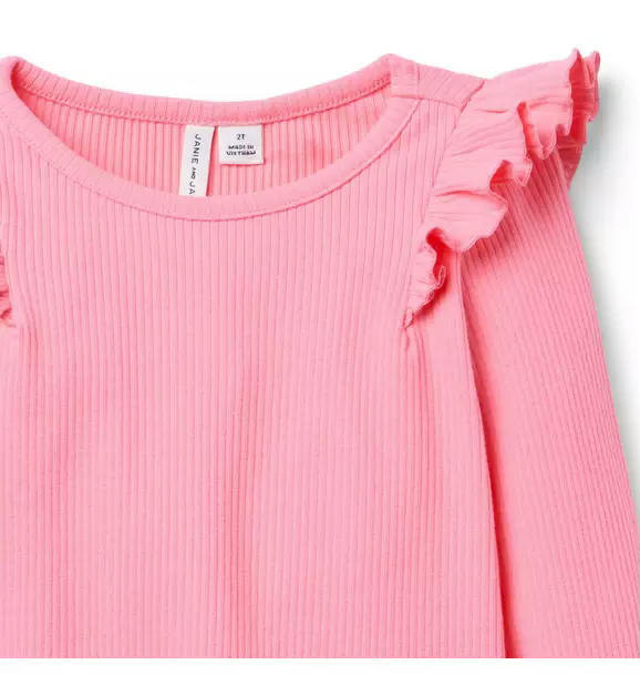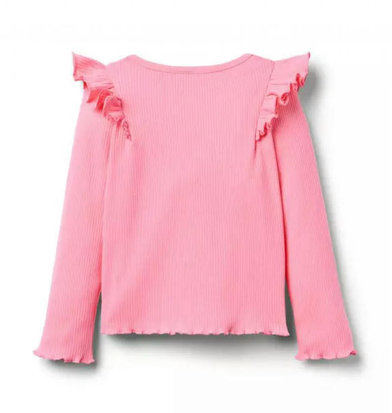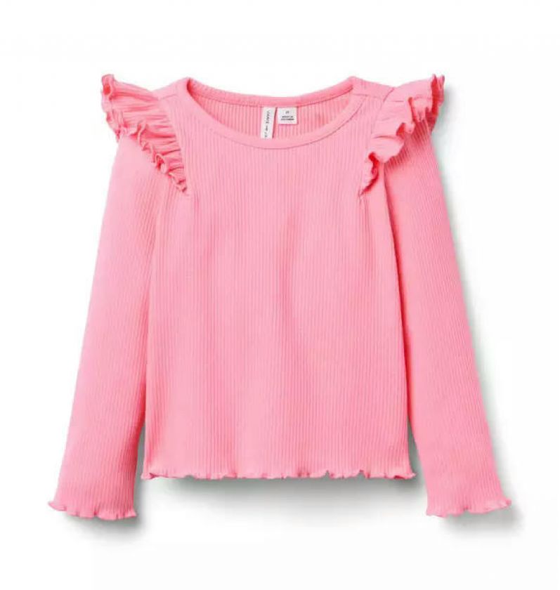 Our classic ribbed top gets an upgrade with ruffles at the shoulder, hem and cuffs. It effortlessly pairs with all their favorites.