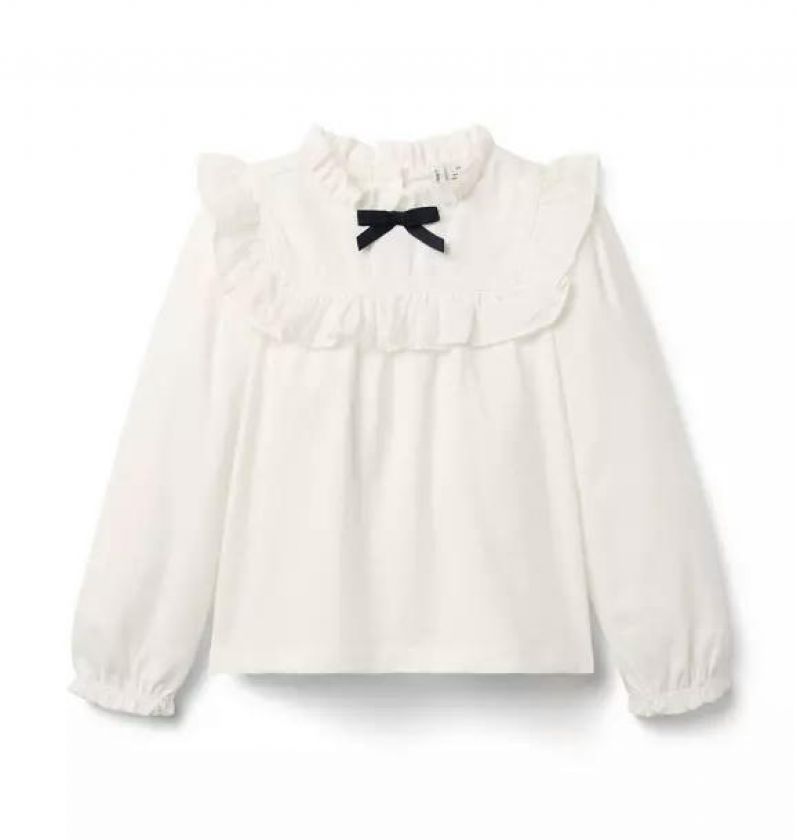Delightful details for this top favorite. With ruffle trim and a bow, it's ready to wear with everything.