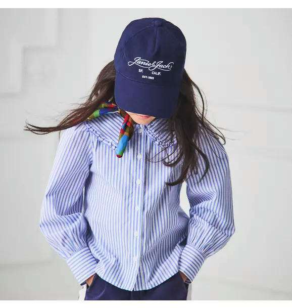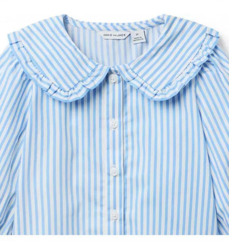 A wear-with-everything top that's just our stripe. In soft cotton poplin with puff sleeves and a ruffle trimmed collar.