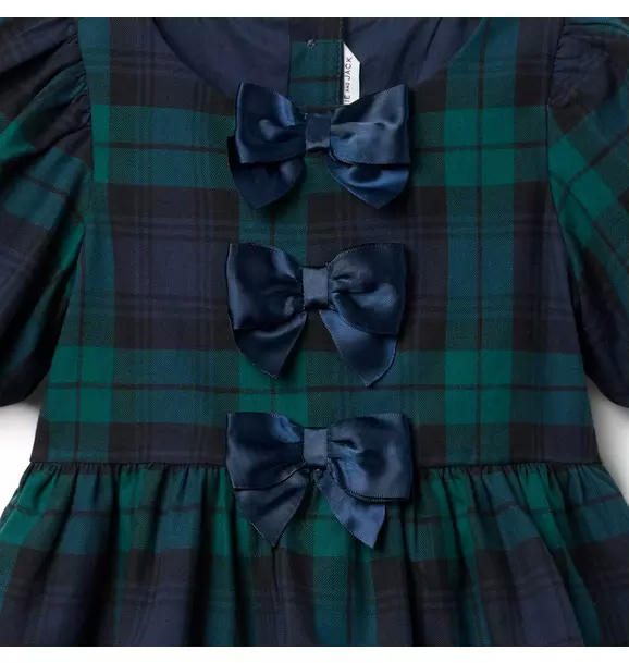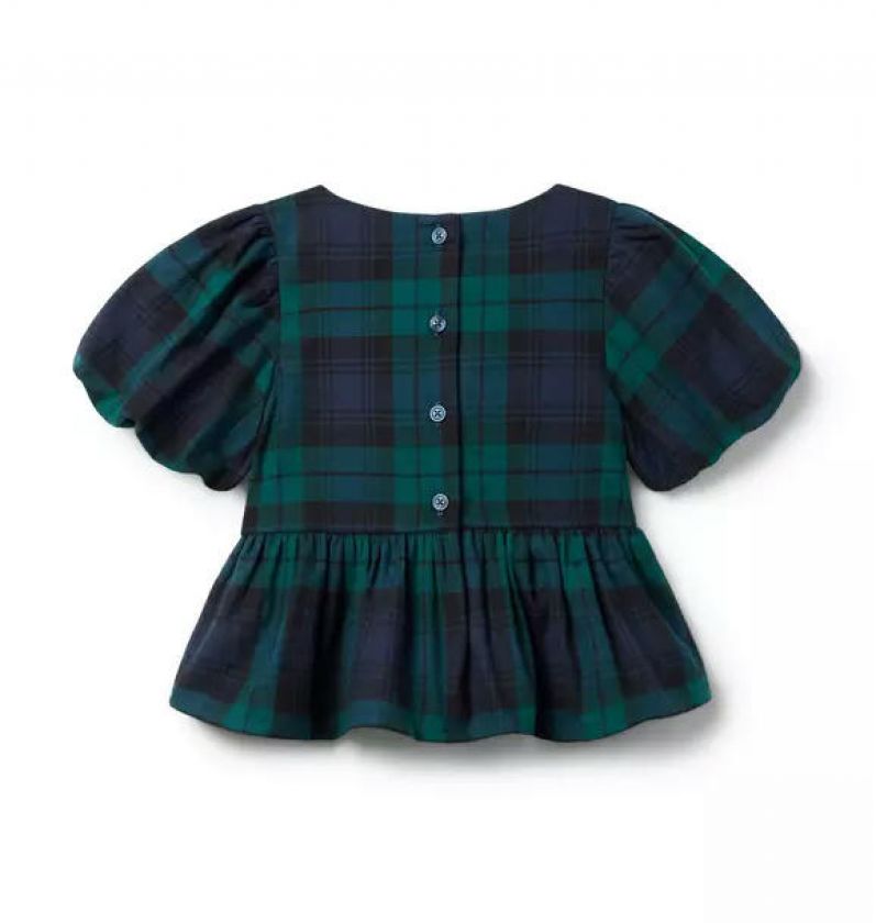 Bows upon bows for our festive tartan top. Featuring a peplum silhouette with puff sleeves too.