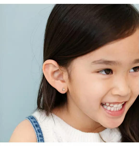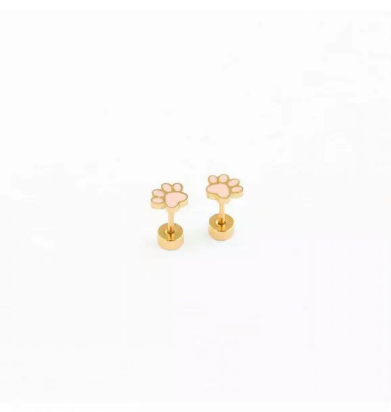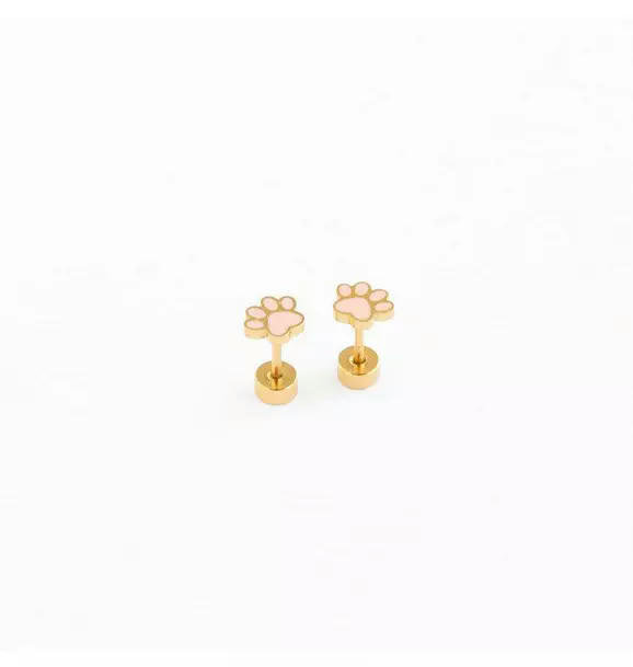 The Pip Pop Paw Print stud earring is Hypoallergenic 18k gold and enamel Paw Print earring with a flat screw back. Designed for babies, toddlers, kids, teens, and adults, these earrings offer fun style and comfort. They are waterproof, tarnish proof and perfect for sensitive ears.