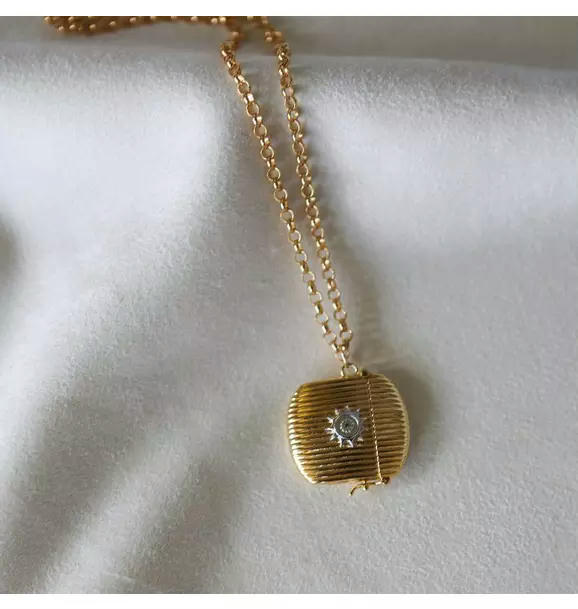 What if you could carry around the thing that really lights you up? Your manifestation list, a mantra, a love note, your kid’s drawing, a micro-dose of magic, a lucky coin. We designed the hollow Vesta Case to do just that. A blazing silver sun inset with a zircon stone shines on the front of the case, symbolizing the grateful ethos of "Carpe Diem."