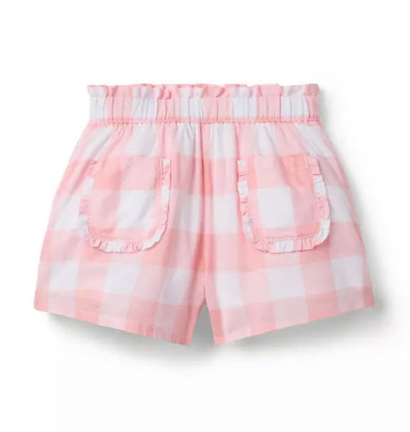 We love the ruffle details on these gingham shorts. Designed in pure cotton with pockets for the little things.
