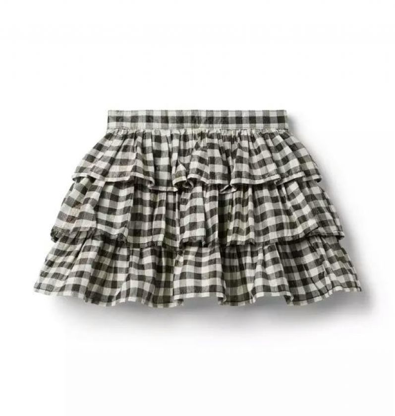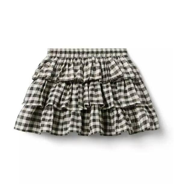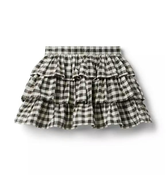 Our shimmering gingham skirt makes every moment shine. Designed with tiered ruffles.