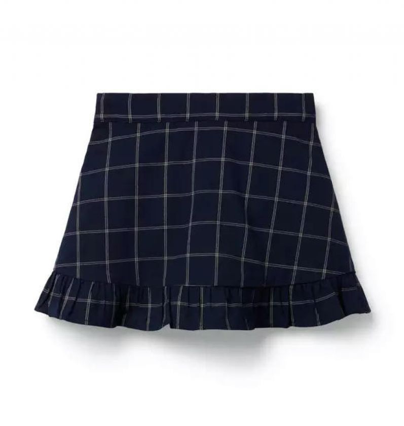 Equestrian by design and always in style, our soft cotton twill skirt features allover plaid, a bridle bit detail and a ruffle hem for extra frills.