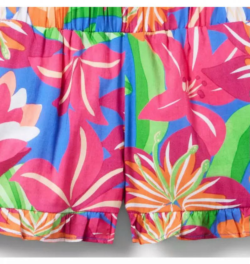 Take the short route to getaways in our bright, tropical-inspired floral short. In pure cotton with a ruffle hem and pockets too.