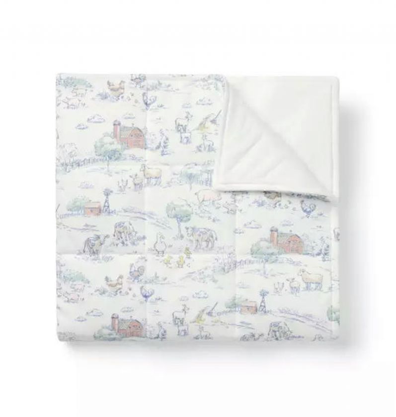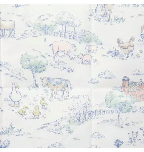 Welcome baby to the world with our quilted blanket designed in soft, pure cotton. Featuring an allover farm animal toile.