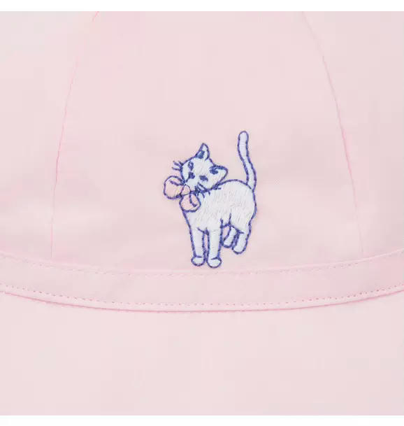 The purrfect addition to sunny first adventures. In pure cotton with an embroidered kitten detail, scalloped trim and a bow at the back.