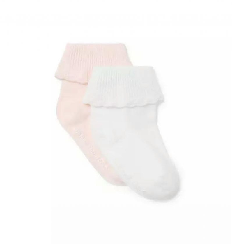 Keep little toes cozy with our soft sock set. Featuring scalloped trim and a foldover cuff.