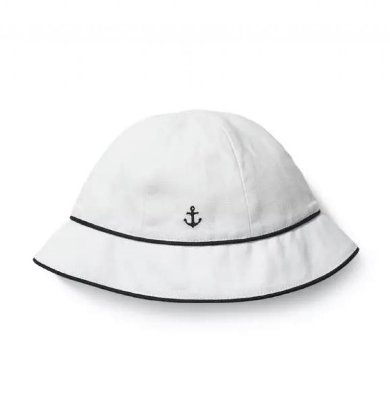 For sunny days or just because, our pure linen bucket hat with a mini embroidered anchor.