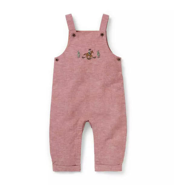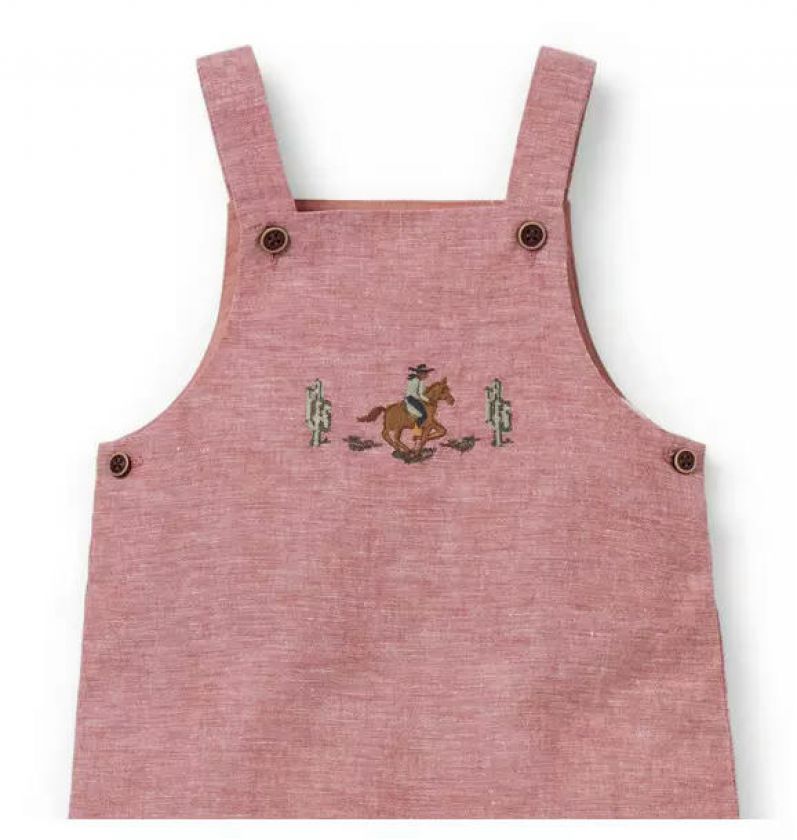 A favorite for every first, our linen-cotton overall features an embroidered cowboy detail, plus a little back pocket too.