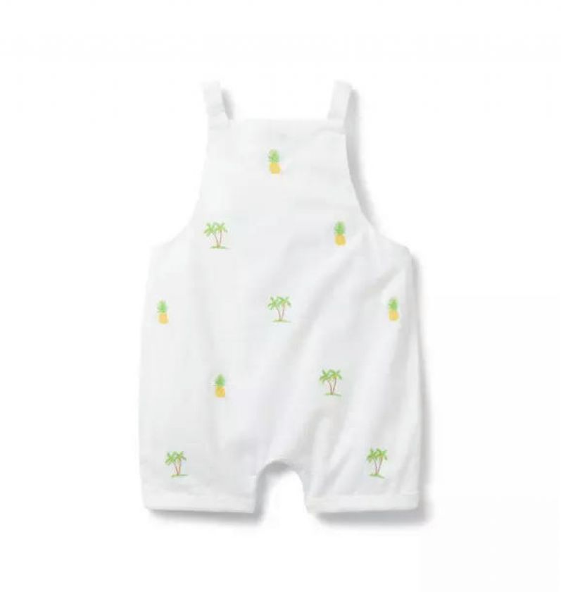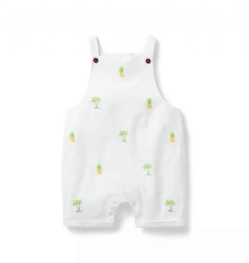 Sunny first moments are extra sweet in our linen-cotton overall. Featuring allover embroidered pineapples and palms, plus cuffed details too.