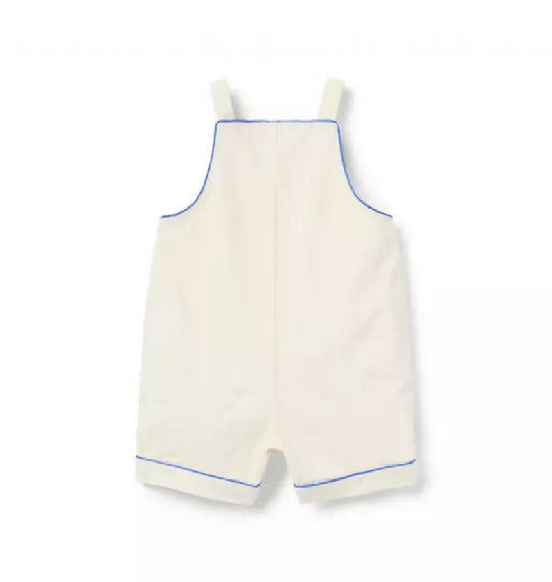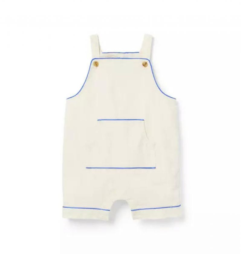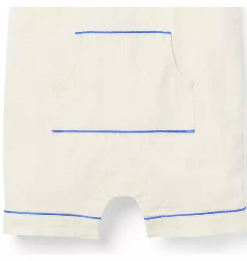An overall favorite, just for baby. Designed in breezy cotton with piped details and a little front pocket too.