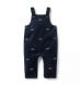 Next stop: first holiday moments. Our soft velvet overall features embroidered trains and a little back pocket too. Consider it your ticket to style.