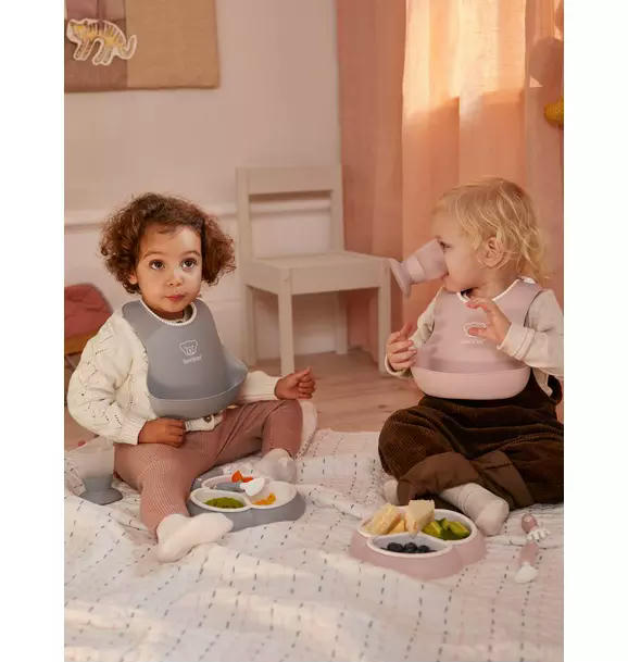 Our baby bib has a soft and comfy neckband that’s easy to adjust as your child grows. It’s made of a water-repellent material that prevents mess and liquid from soaking through to stain clothes. The deep spill pocket also holds its shape, so any food it contains will not be squeezed out by your child’s movements. With a smart pack of 2, you always have a baby bib close at hand. Use one bib at home and pack the other in your nappy bag. Or use one bib while the other is in the dishwasher. Two baby bibs make it easier for you to avoid messy mealtimes.