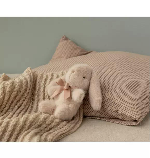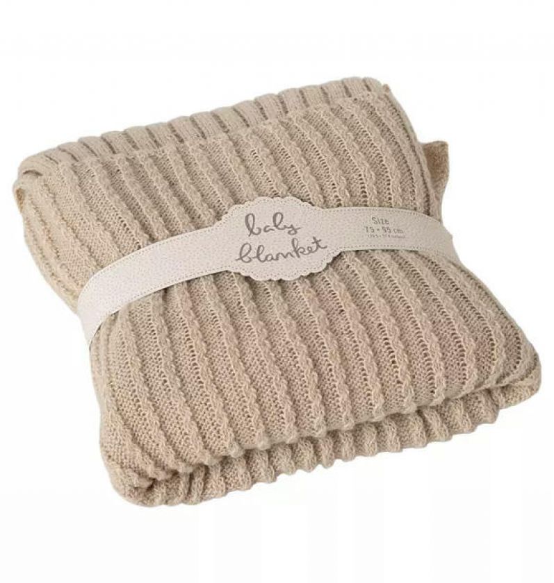 A soft and cosy blanket for the little ones. The blanket comes with a beautiful knitted pattern on each side. The measurement is 75 x 95 cm.