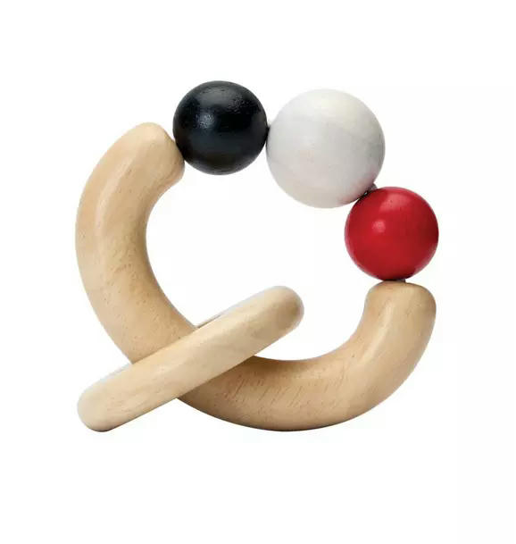 This rattle features a smooth wooden ring and soft, high-contrast colored beads that are gentle on little hands. Designed to engage and entertain, it helps enhance a baby’s fine motor skills as they grasp, shake, and explore. The soothing sound and tactile experience encourage sensory development while promoting hand-eye coordination and muscle control. Perfect for newborns and young infants, this rattle is a wonderful tool for early learning and playful exploration. High-contrast colors like black, red, and white are especially beneficial for young babies, as they are easier to see and help develop visual focus.