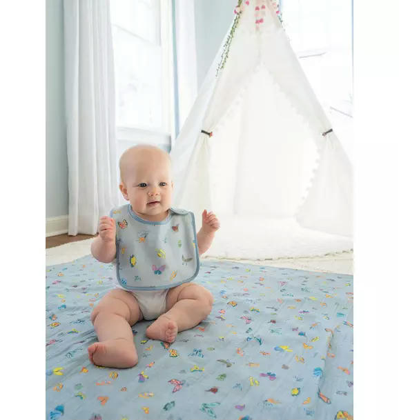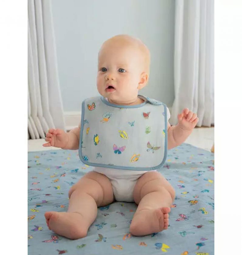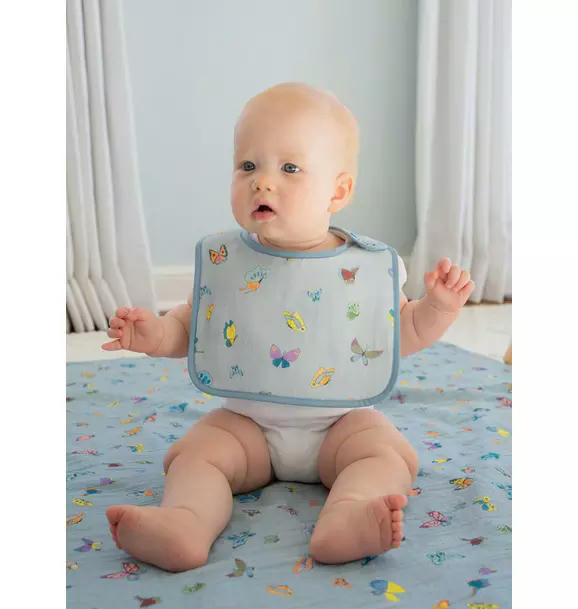 The Perfect Bib, constructed with a buttery soft cotton terry layer on the back and a beautiful printed muslin front, is absorbent yet elegant. Look forward to meal times, bottle feedings, and those extra “drooly” days being more polished and fun.