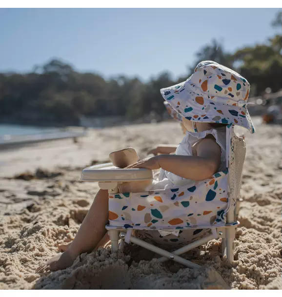 Got a little one who won't sit still? Maybe it's because... they're sitting on the wrong seat! Introducing the ultimate, most comfortable baby chair now available in the US: the IZIMINI portable booster seat. With over 1,500 5-stars reviews, our iconic baby chair is loved by 60,000 families in Australia and the US. Whether you're strolling along the boardwalk in California, exploring Central Park in New York, or simply relaxing in your own backyard, you won't find a chair for your little one that's as stylish, cozy, and practical as the IZIMINI Baby Chair. This adorable seat isn't limited to the beach - it's perfect for picnics, camping trips, family gatherings, or whenever you don't have a high chair as it can be used as a booster seat on a dining chair thanks to the straps included in the matching carry bag. Showcases a stunning floral design by acclaimed Sydney-based artist Sara Riley.