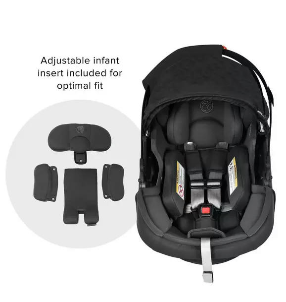 Includes durable 5-point harness, infant head support insert, UV sunshade with Paparazzi Shield™ extension.